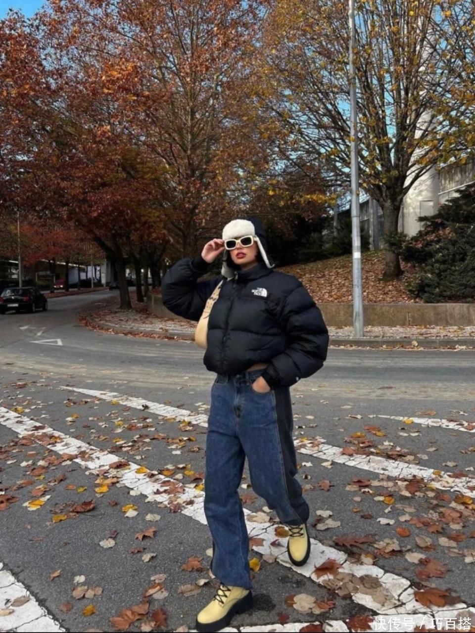 冬天降温后不知说念怎样穿?黑羽绒+牛仔裤别错过,怕冷怕脏皆能选